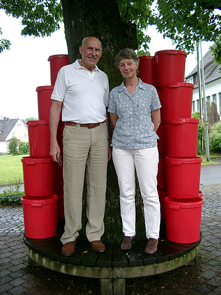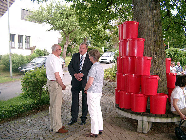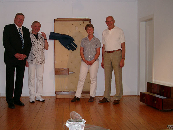 Hellmut Riebeling, der Vorsitzende des Fördervereins, führte in die Ausstellung mit der provokativen Frage ein: "Sie sehen aufgetürmte rote Eimer, Nylonstrümpfe in einer Glassäule, Plunder vom Trödelmarkt - ist das Kunst?"