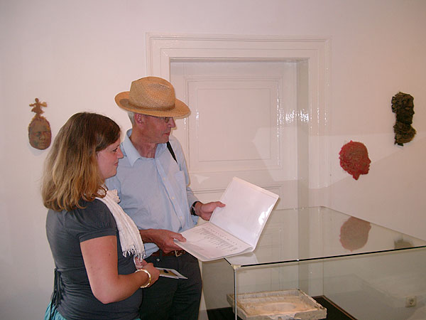 Sehr persönlich gab er seine Eindrücke von Begegnungen mit der in Berlin und Braunschweig ausgebildeten Bildhauerin an den interessierten Zuhörerkreis weiter. Es gebe "gemachte" Künstler, verfestigt in ihrer Weltsicht und künstlerischen Aussage. Christiane Tyrell jedoch hinterfrage, forsche, wolle weitergehen zu neuen künstlerischen Inhalten. Besonders deutlich werde dies an ihren Masken, welche sie künstlerisch verfremde mit Stoffen, Farbstreifen und Wachsvariationen. Lebendigkeit des Ausdrucks und Durchschimmern der Persönlichkeit sei ihr Anliegen.