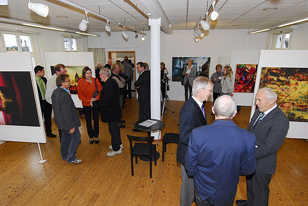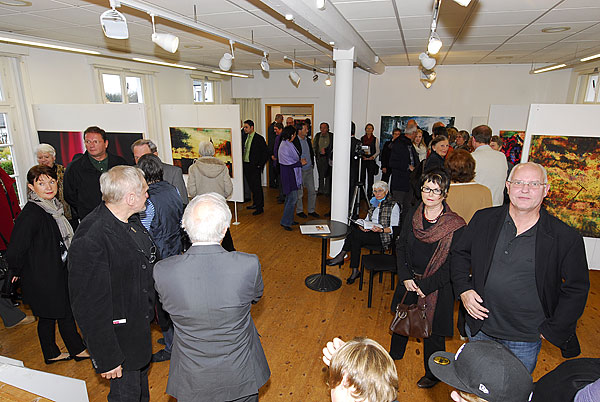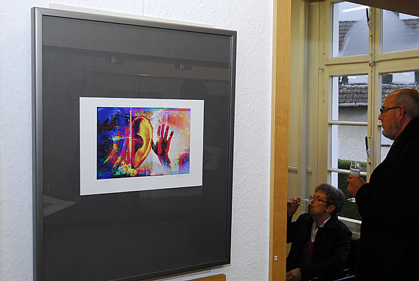 Natürlich sah jeder der 70 Kunstfreunde Fotografien: bunte, schwarz-weiße, ruhige, bewegte, sich auf den ersten Blick erschließende aber auch fragende Fotocollagen. Jedoch keine Gefälligkeitsfotos, keine Fotos der Eitelkeit, keine Auftragsfotos, keine bloßen Ablichtungen mit fotografischer Technik.