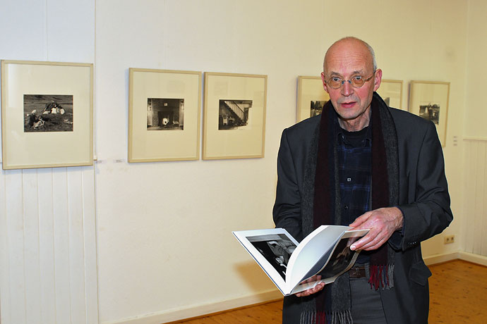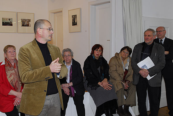Franz Bodo Gerono, Direktor des Kunst Kabinetts, wies auf die persönliche Führung durch die Ausstellung durch Martin Rosswog hin. Sie findet statt am Sonntag, 27. März, 16:00 Uhr. Anschließend zeigt Rosswog seinen Dokumentarfilm "Und jetzt sind wir alle verflossen in die Vergangenheit" (80 Minuten). Die Ausstellung ist noch bis zum 17. April zu sehen, jeweils Donnerstag und Sonntag von 15 - 17.00 Uhr.