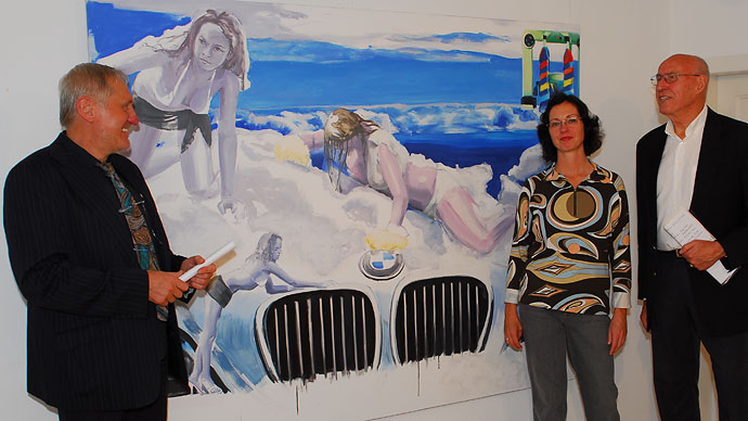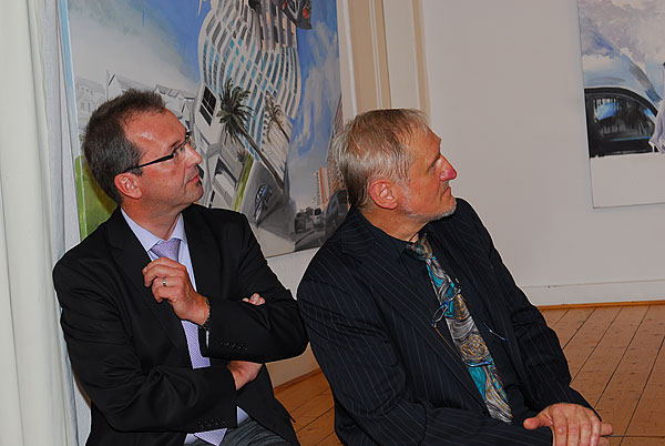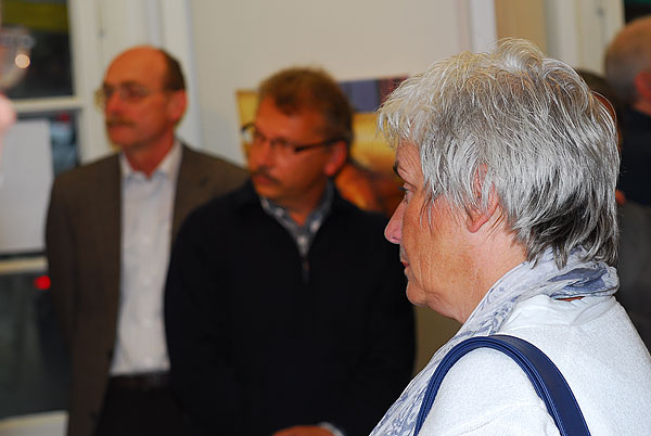 Gennies stellte die Künstlerin kurz vor und hob auf das Ehrenamt ab, mit dem das Kabinett geführt wird. Stolz sei er auch auf die kommende Premiere des Theaterstücks "Kleine Eheverbrechen". Unter der Regie von Anja Wienpahl entsteht mit den Schauspielern Renate Gosiewski und Jörn Wollenweber ein eindringliches, intensives Theaterstück.
