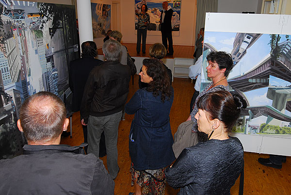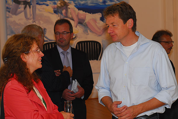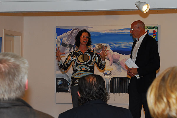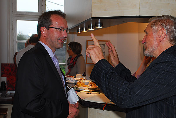 Friederike Vahlbruch und der Vorsitzende des Fördervereins KUNST KABINETT HESPERT e. V., Hellmut Riebeling, führten einen Einführungsdialog auf der Bühne. Die Mannschaft des Hesperter Restaurants Ballebäuschen hat für die Gaumenfreuden im Anschluss gesorgt. Gegen 17:30 Uhr haben die letzten Gäste der Vernissage das Kabinett verlassen - sie fühlten sich offenbar wohl.