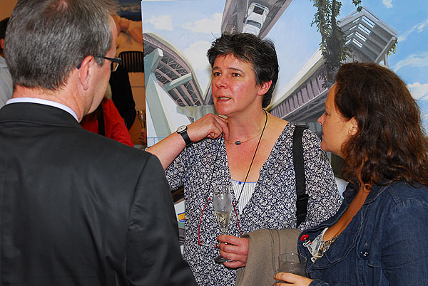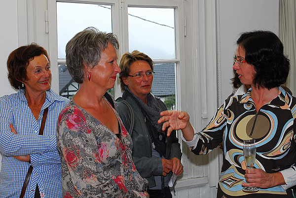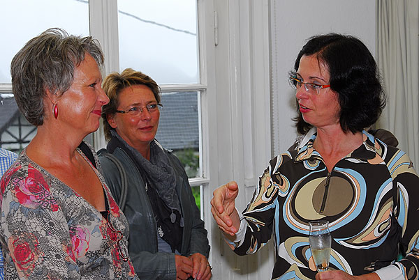 Trotz des völlig verregneten Sonntags fanden sich zur Vernissage mit Arbeiten der Kölner Künstlerin Friederike Vahlbruch mehr als 50 Besucher im KUNST KABINETT HESPERT ein. Bürgermeister Rüdiger Gennies begrüßte die Gäste, darunter auch den Bezirksdirektor Ralf Waßer von der Kreissparkasse Köln. Sein Institut hat die Ausstellung maßgeblich unterstützt.