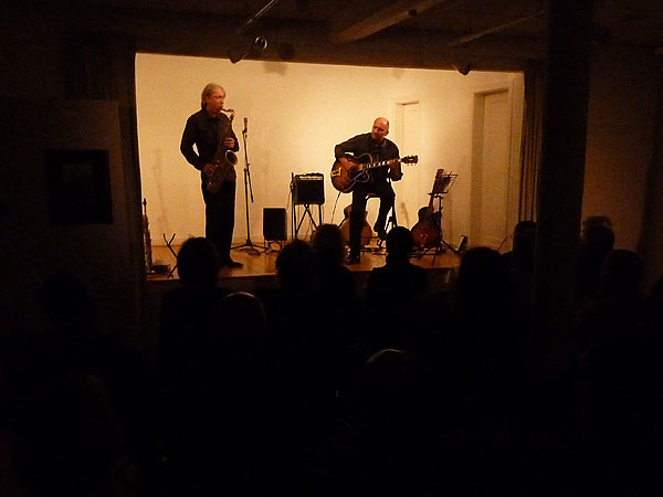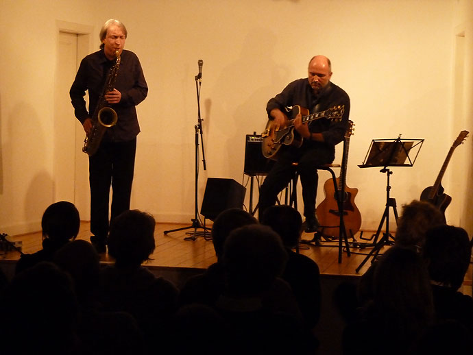 "The Art Of Chamberjazz" hieß das Programm, mit dem das bekannte, regionale JazzDuo Stephan Aschenbrenner (Saxophone, Klarinette, Querflöte) und Oliver Trost (Gitarren) die Zuhörer im KUNST KABINETT HESPERT begeisterten.