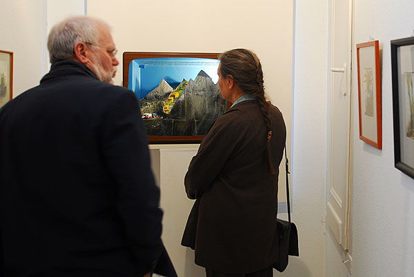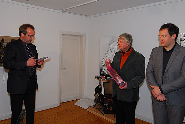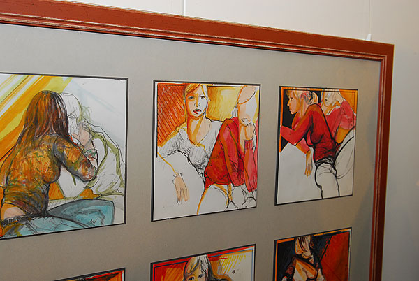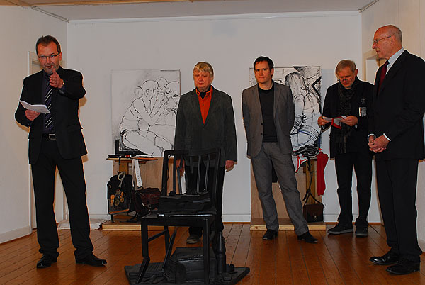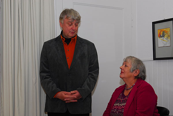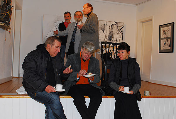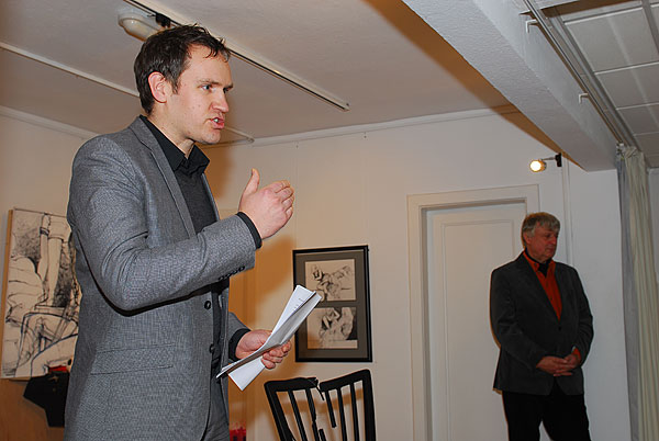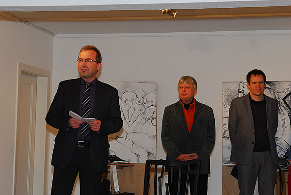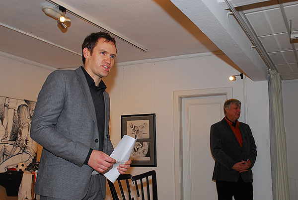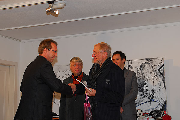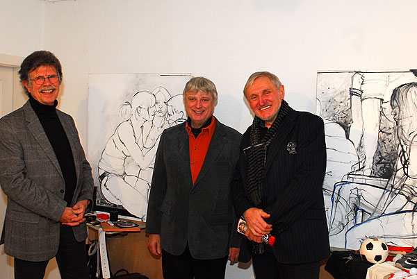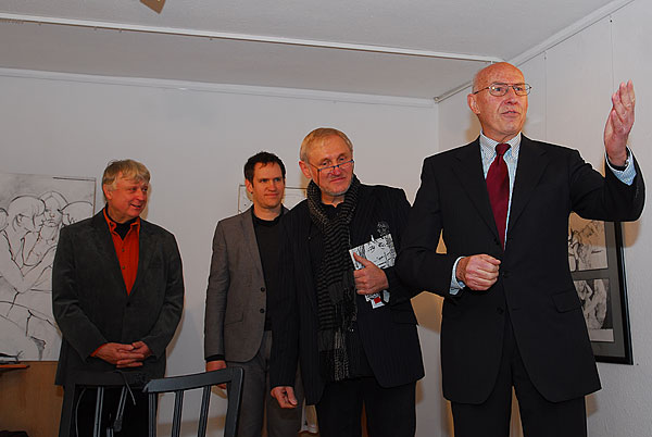 Schaffen: Kolorierte groß- und kleinformatige Zeichnungen voller Dynamik, voller Phantasie aber auch voller offener und versteckter Erotik. Joachim Schneider M.A. Münster führte in das umfassende Schaffen des Künstlers und seine Intentionen ein.