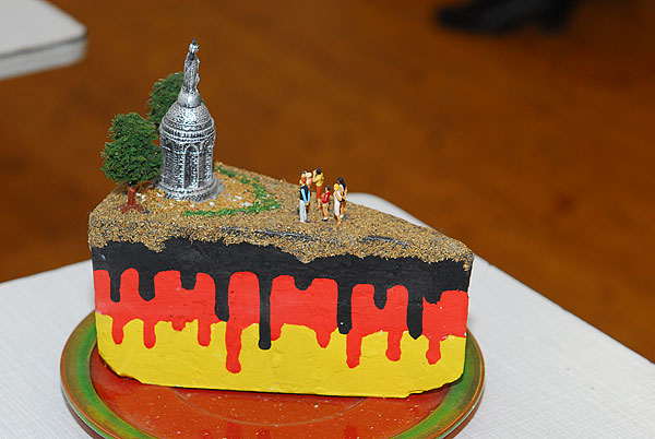 "Ein Stück Deutschland" tut sich vor dem Betrachter auf aus einer bissig-ironischen Perspektive. Ob es die Deutschtümelei des Hermannsdenkmals oder die Fixertorte ist, ob es die Torte aus Wohlstandsmüll oder die Milchvernichtungstorte zur Stabilisierung des Preises ist - alle bieten Gesprächsstoff und eine neue Sicht auf die Realität im Wohlstands-Deutschland.