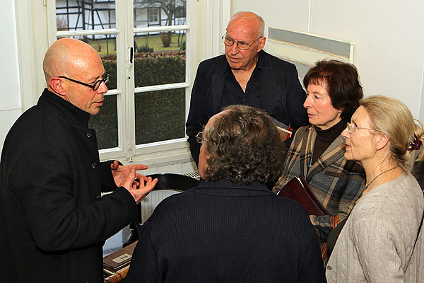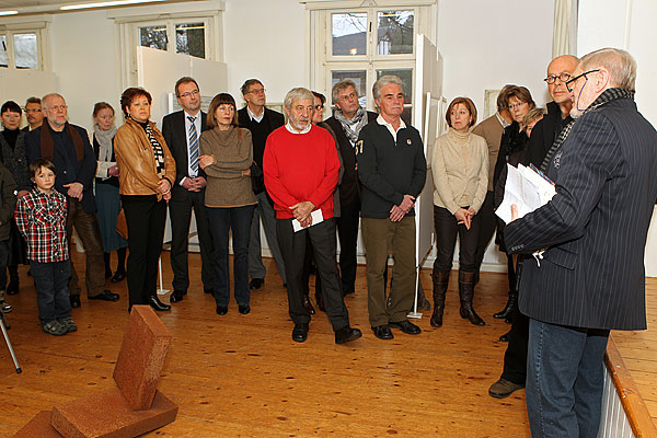 Bürgermeister Rüdiger Gennies und Hellmut Riebeling, der Vorsitzende des Fördervereins, begrüßten das internationale Publikum. Die Ausstellung ist bis zum 13. Mai jeweils samstags und sonntags von 15:00 bis 17:00 Uhr zu sehen.