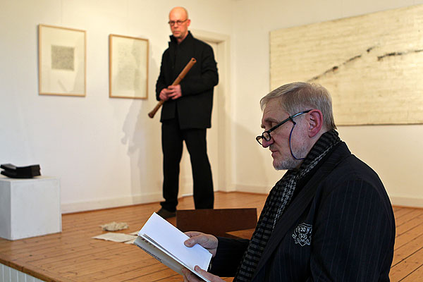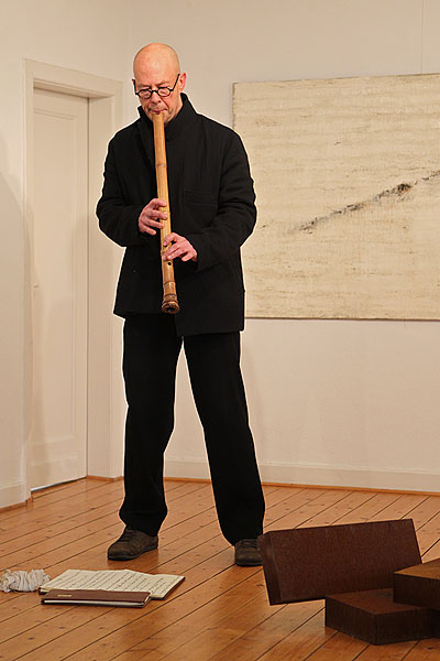 Der Künstler selbst ließ stattdessen seine japanische Bambusflöte sprechen. Ihre auf- und abschwellenden Töne verbanden sich mit den reinen Farbklängen, welche von seinen meditativen Gemälden ausgehen.