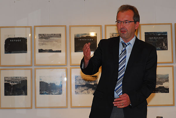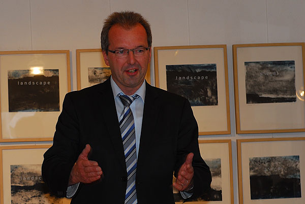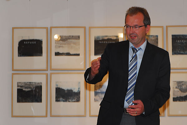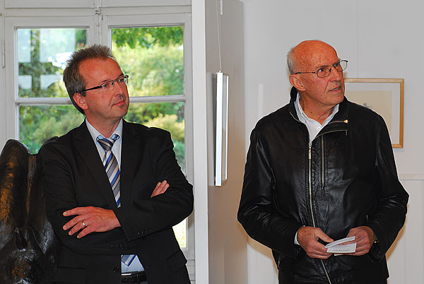 Eddy de Buf selbst stand den Besuchern für Fragen zur Verfügung, wovon diese auch reichlich Gebrauch machten. Der sympathische Belgier nutzte die Gelegenheit, seine Kunst zu ausführlich zu erläutern. Bürgermeister Rüdiger Gennies überbrachte die Grußworte der Gemeinde, die Träger des KUNST KABINETT HESPERT ist. Er betonte die Wichtigkeit der Kunst für ein lebendiges Gemeinwesen. Der Vorsitzende des Fördervereins, Hellmut Riebeling, bedankte sich ausdrücklich für die sehr gute Unterstützung durch die Gemeinde Reichshof.