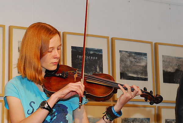 Den musikalischen Rahmen gestalteten Schüler und Schülerinnen von der Gesamtschule Reichshof mit ihrem Lehrer Hans-Peter Schmitz. Kristin Lemke spielte Geige, Mandy Fink sang dazu. Begleitet wurden sie dabei von Hans-Peter Schmitz mit Gesang und Gitarre.
