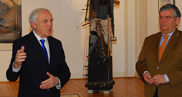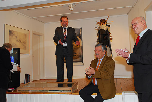 Bürgermeister Rüdiger Gennies freute sich, diesmal den ums KUNST KABINETT HESPERT verdienten Professor Zehnder, der stets die Werke der Künstler würdige, ehren zu können und gratulierte ihm im Namen von Rat und Verwaltung zu seinem 75. Geburtstag. In seinen Dankesworten zeigte sich Prof. Dr. Zehnder erneut als " Meisterredner der Kürze". Nach einem Statement zum Wesentlichen der Kunst lobte er das KUNST KABINETT HESPERT als ein Labor der Kunst, das einen hervorragenden Überblick über besondere Zeitgenössische Kunst liefere. Er werde dieser Institution natürlich auch in Zukunft wie bisher verbunden sein. Dann reflektierte er seine Zeit in den Nachkriegsjahren als Kind in Dieringhausen, wo er das Oberbergische kennen und lieben lernte. Er lobte den Oberbergischen Kreis, Mitveranstalter dieses Empfanges, für sein großes Engagement für die Kunst, insbesondere für die Schaffung der Oberbergischen Kunstsammlung. Die Ausstellung läuft noch bis zum 28. April 2013. Öffnungszeiten Samstag und Sonntag von 15 bis 17 Uhr oder nach telefonischer Voranmeldung unter 01 78 / 6 89 63 05.