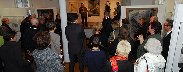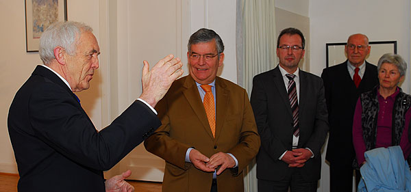 Wegen Überfüllung musste das KUNST KABINETT HESPERT am Sonntag, 3. März, fast seine Türe schließen: Der Empfang zum 75. Geburtstag von Professor Dr. Frank Günter Zehnder und die aus diesem Anlass stattfindende Eröffnung einer Sonderausstellung von Werken des großen Malers und Zeichners Gerhard Seyde zog mehr als 80 Besucher an.