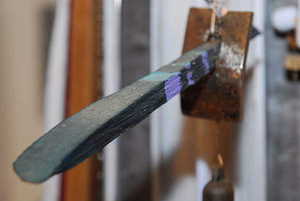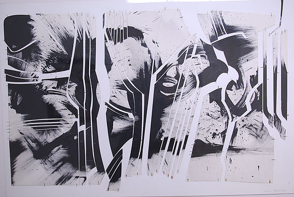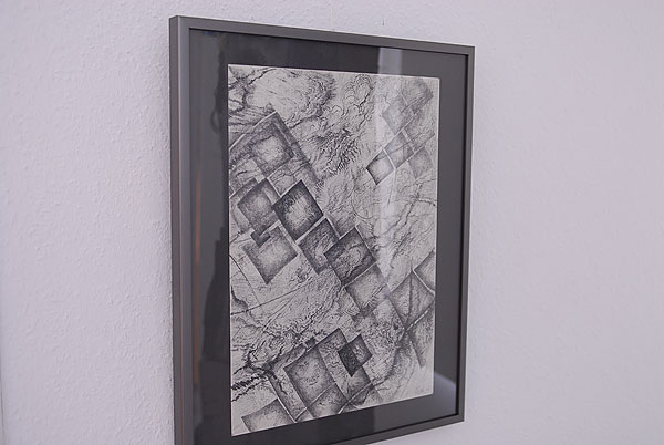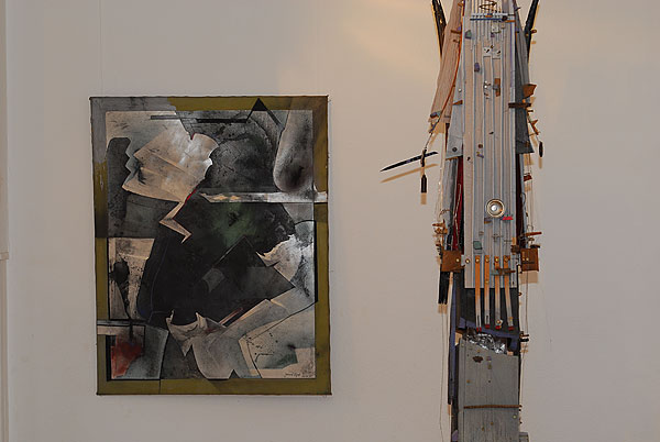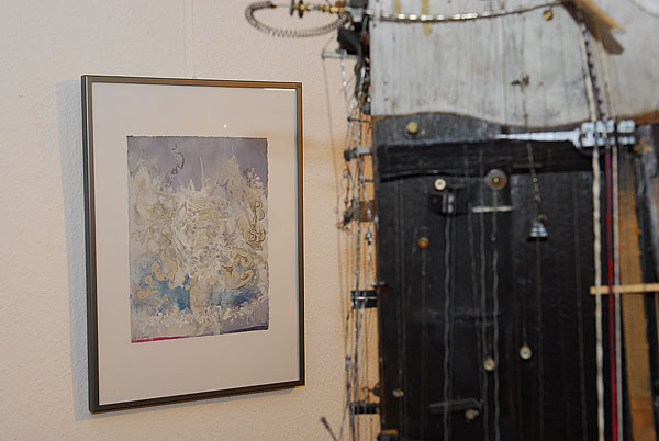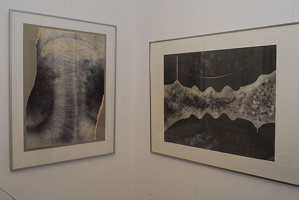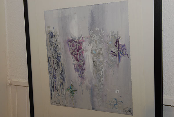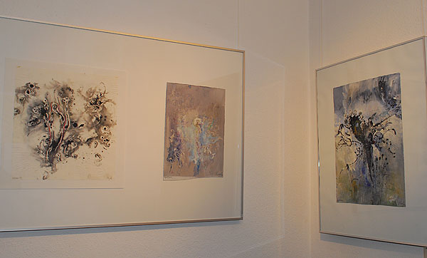 Die Bilder und Zeichnungen zwingen zum genauen Hinsehen und Forschen. Da öffnen sich Leinwände in die dritte Dimension, reißen auf in darunterliegende dunklere Schichten. Wie Blitze zucken gleißende Gerade in wellenförmige oder getupfte Welten und zerbrechen diese. Malerische Elemente stehen im Dialog und Spannungsfeld mit Linie, Geometrie. Zum Träumen schön sind die vielen Bleistift- und Federzeichnungen. Filigranhaft, feinst ziseliert, mit eindeutiger, klarer Handschrift erwachsen aus Linien, Kreisen und Tupfen neue Figuren oder Traumbäume oder Zauberwesen.