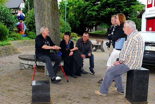 Das Publikum begrüßte Bürgermeister Rüdiger Gennies. Die Einführung wurde vom Vorsitzenden des Fördervereins KUNST KABINETT HESPERT, Hellmut Riebeling, mit einem Gespräch mit Ingrid Obendiek zu ihrer Kunst gestaltet. Ein besonderer Höhepunkt der Vernissage war ein Auftritt der Bonner Künstlerin Larissa Laë, die Auszüge aus ihrem Programm "POELYRICANTI" darbot. Der Gesang in einer fremden, von ihr erfundenen Sprache verzauberte das Publikum. Mehr von Larissa Laë gibt es am 22. November, 20:00 Uhr, in einem "Konzert innerhalb der Kunst".