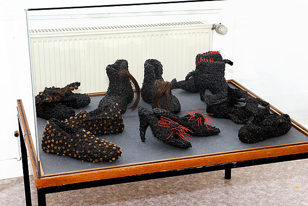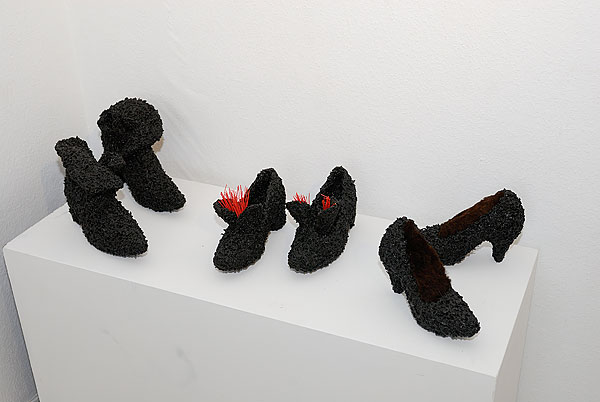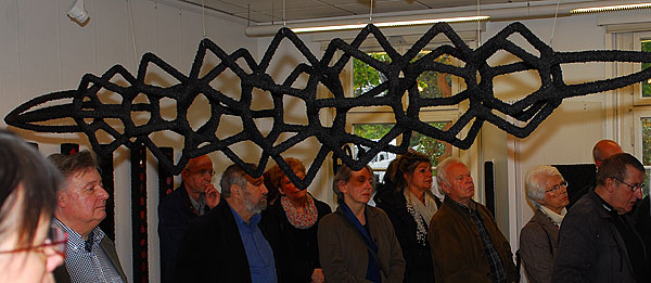 Bodo Gerono, der Leiter des Kunstkabinetts, lobte Marion Menzel über die Maßen. Ihre Objekte seien vergleichbar denen des großen Verhüllers Christo. Sie entziehe Alltagsobjekten wie Schuhen ihre gewohnte Stofflichkeit und transponiere sie in künstliche und künstlerische Schauobjekte. Ihr Skizzenbuch erweise sie zudem als große Malerin mit Kraft und hoher Potenz. Seit den 70er Jahren begleite er ihre Entwicklung mit höchstem Interesse.