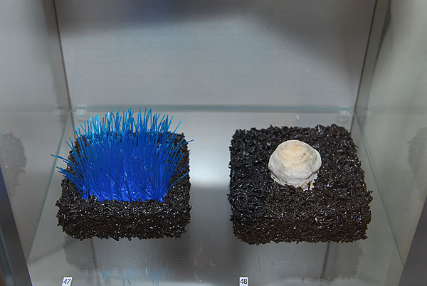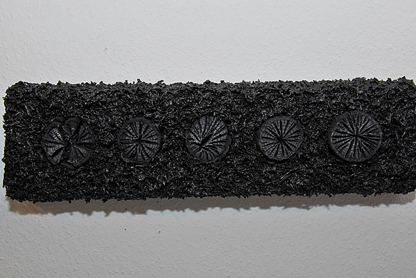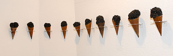 Künstlerin Marion Menzel überzieht alle ihre Objekte mit schwarzen Teeblättern. Sie rettet so das organische Material "Tee" vor dem natürlichen Prozess des Vergehens und wiederbelebt es zu einer neuen Realität des Dreidimensionalen. Natur durchwebt ihre gesamte Kunstsprache.