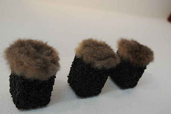 Dabei geben ihre Objekte dem Betrachter keine Rätsel auf: Schuhe bleiben Schuhe. Headsets und Schlafmasken fürs Flugzeug sind sofort als diese erkennbar. Die versiegelte Teeoberfläche macht jedoch aus ihnen bizarre, dreidimensionale Exponate, welche sogar witzig wirken in der Zusammenschau mit kuscheligem Fell oder steifen Rosshaaren. Vergängliche Teeblätter, welche der Betrachter bisher nur als Grundstoff für ein duftendes, heißes Getränk kannte, werden dadurch berührbar und für die Ewigkeit präpariert.