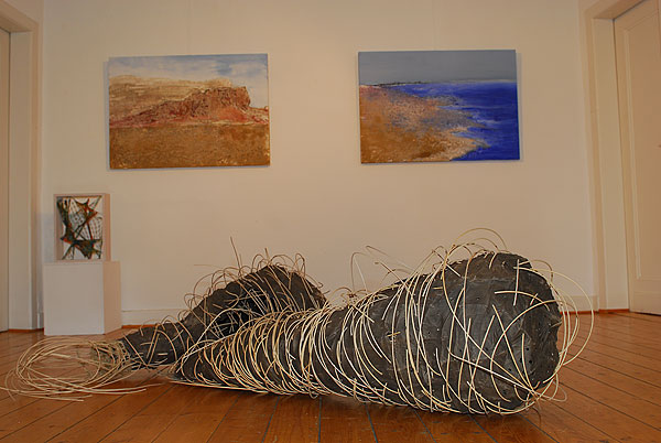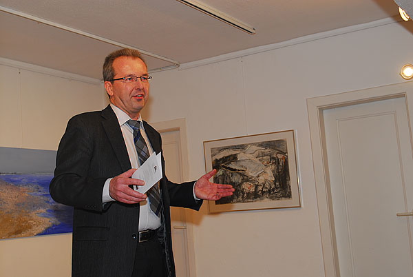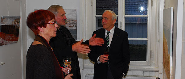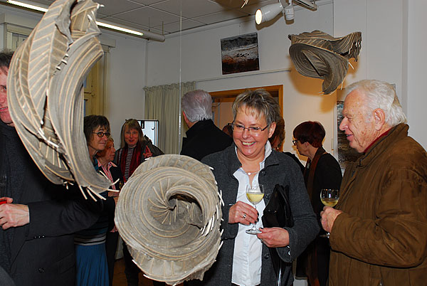 Ferner wurden Exponate von Renate Fischer (Papierschöpfungen), Ingrid Golz (Papierskulpturen), Maria Multhauf (Materiabilder) und Stefan Neißner (Malerei) präsentiert. Bürgermeister Rüdiger Gennies begrüßte die zahlreichen Gäste, in die Ausstellung führte Professor Dr. Frank Günter Zehnder, Direktor der Internationalen Kunstakademie Heimbach, ein.