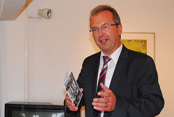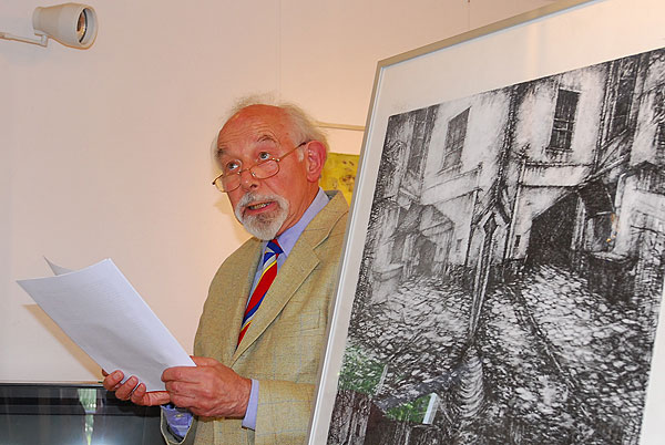 Als Hommage zum 80. Geburtstag des weithin geachteten und anerkannten Künstlers Georg Tokarz ist seit Sonntag in der Tat eine außergewöhnliche Ausstellung im KUNST KABINETT zu sehen. Bürgermeister Rüdiger Gennies begrüßte die vielen Besucher der Vernissage, bevor in seiner Einführung Georg Tokarz selbst den Weg und Zugang zu einigen der aussagekräftigsten Bilder wies.