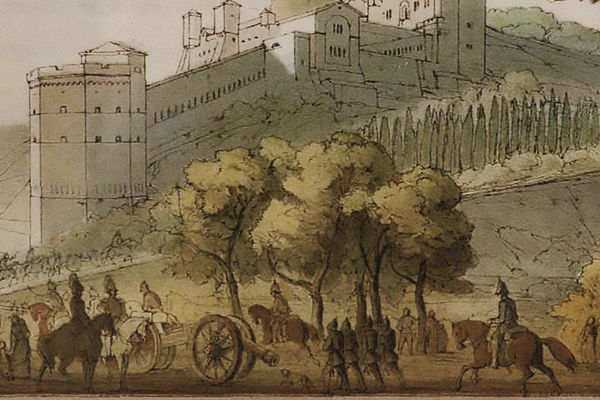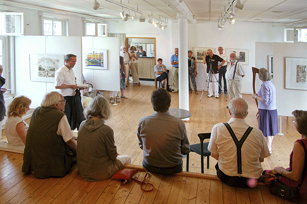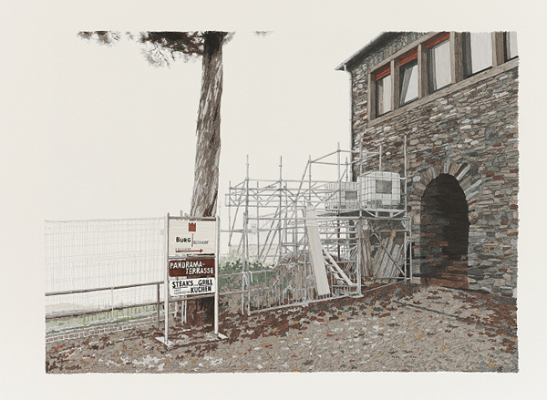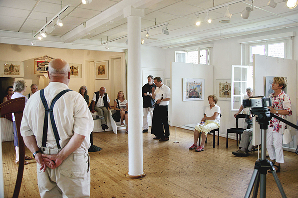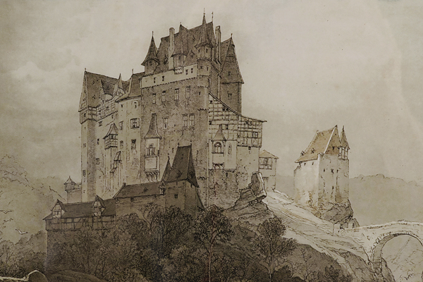 Erst in den 50er Jahren des letzten Jahrhunderts hat man die Düsseldorfer Malschule des 19. Jahrhunderts neu entdeckt wie man in einer hochqualifizierten Einführung des Kunsthistorikers Dr. Wolfgang Vomm bei der Eröffnung der Ausstellung erfuhr. Vomm stellte die Albumblätter in den historischen Zusammenhang der Eröffnung des Wallraff Richartz Museums in Köln , wozu Scheuren diese Auftragsarbeit von Kaiserin Augusta persönlich übertragen wurde. Kein Wunder, daß vor allem Städte und Burgen zeichnerisch erzählt werden, die Bezug zur Geschichte der Hohenzollern am Rhein haben. Von daher ist diese jüngste Hespert-Ausstellung zugleich eminent zeitgeschichtlich.
