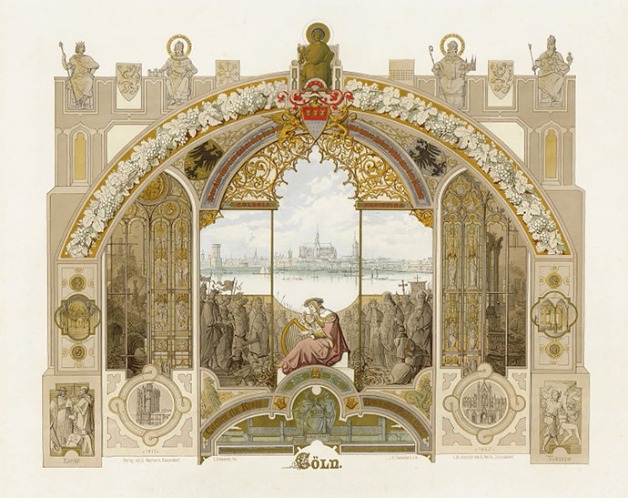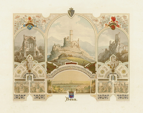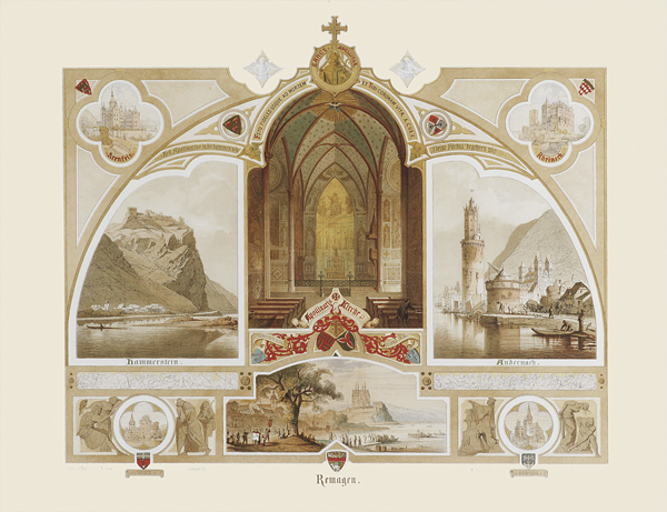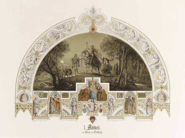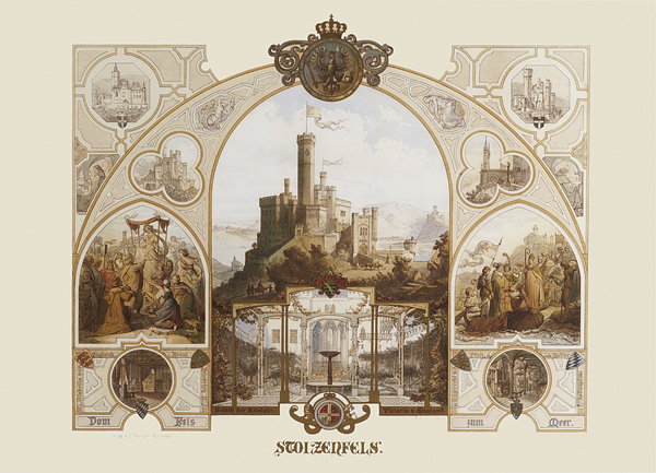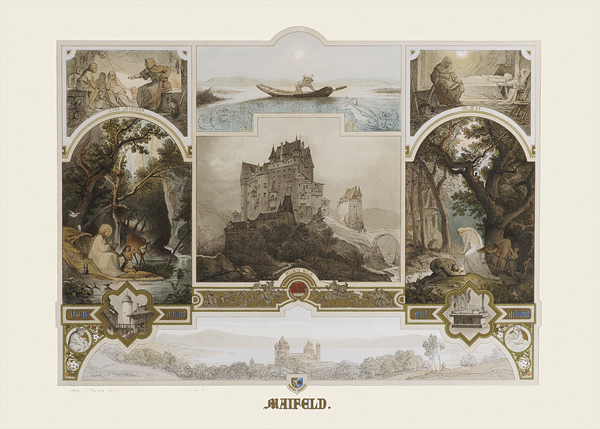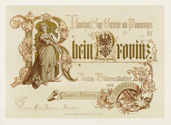 Wer aber die Rheinansichten des Spätromantikers Caspar Scheuren näher betrachtet, findet ein Füllhorn erzählfreudiger Motive, historischer Rheinsagen und detailgenauer Zeichnungen der Burgen, Städte und Kathedralen des Mittelrheins bis Cleve, welche das Herz jedes Rheinländers höher schlagen lassen. Der Abstand zur Rheinromantik des 19. Jahrhunderts ist groß genug um die 27 großformatigen Lithographien aus der Hand Scheurens wieder würdigen zu können: Ihre Detailfülle, ihre Erzählkunst, ihre Farbigkeit und vor allem ihren Reichtum an Allegorien und mythischen Klängen.
