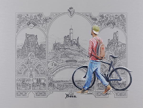 Dem V orwurf der "kitschigen" Rheinromantik vergangener Rheinidylle entging man dank der verblüffenden Idee von Projektleiterin Susanne Bonenkamp , 14 zeitgenössische Künstler und Künstlerinnen um ihre kritische Auseinandersetzung mit Scheurens "Blick zurück" zu bitten. Ein spannender, vielschichtiger "Blick von heute" auf die Rheinromantik und den Rhein heute entstand dadurch. Die Rheinlandschaft und ihre sakralen und profanen Bauten erscheinen in der Spiegelung unserer Zeit vielfach gebrochen . Dem Betrachter bleibt es überlassen, zu vergleichen und zu deuten.