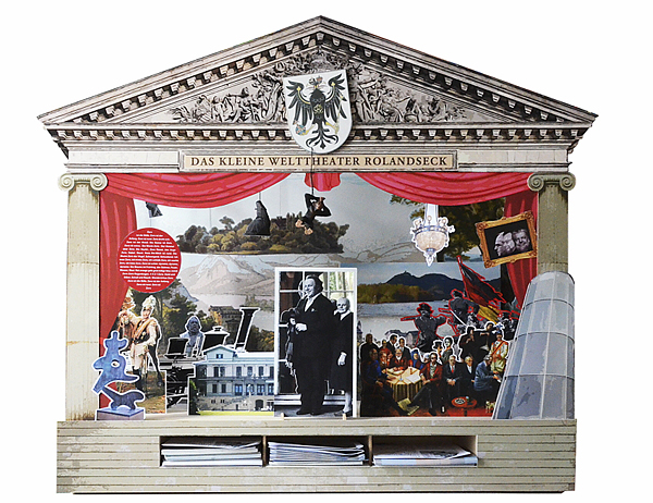 Klaus Hansen gar entschied sich für die Fertigung eines kleinen Welttheaters im Stile des 19. Jahrhunderts mit beweglichen Figuren. Es mutet auf den ersten Blick romantisch an, ist jedoch hochpolitisch und zeitbezogen. Als Akteure und Besucher des Drachenfels und Bahnhof Rolandsecks treten fast 70 weltbekannte Künstler und Politiker auf von Clemens von ‚Brentano bis Michail Gorbatschow.